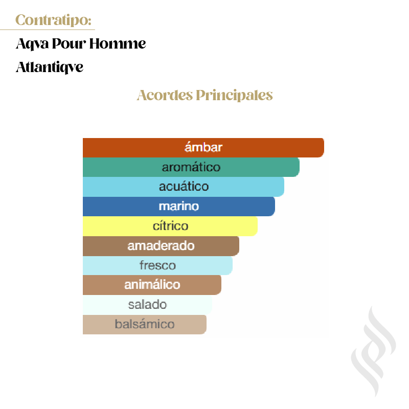 Contratipo (Aqva Pour Homme Atlantiqve) es una fragancia de la familia olfativa Amaderada Acuática para Hombres. Se lanzó en 2017. La Nariz detrás de esta fragancia es Jacques Cavallier Belletrud. Las Notas de Salida son notas acuáticas, bergamota de Calabria, limón siciliano (lima siciliana) y salvia; las Notas de Corazón son notas marinas, ámbar gris y manzana; las Notas de Fondo son benjuí, Amberwood, pachulí, vetiver y sándalo.