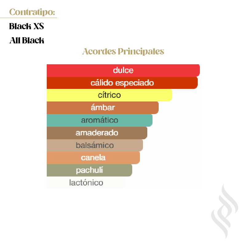 Contratipo (Black XS) es una fragancia de la familia olfativa Oriental Amaderada para Hombres. Se lanzó en 2005. Fue creada por Olivier Cresp, Rosendo Mateu y Christian Dussoulier. Las Notas de Salida son limón (lima ácida) y salvia; las Notas de Corazón son praliné, canela, bálsamo de Tolú y cardamomo negro; las Notas de Fondo son pachulí, palo de rosa de Brasil y ámbar negro.