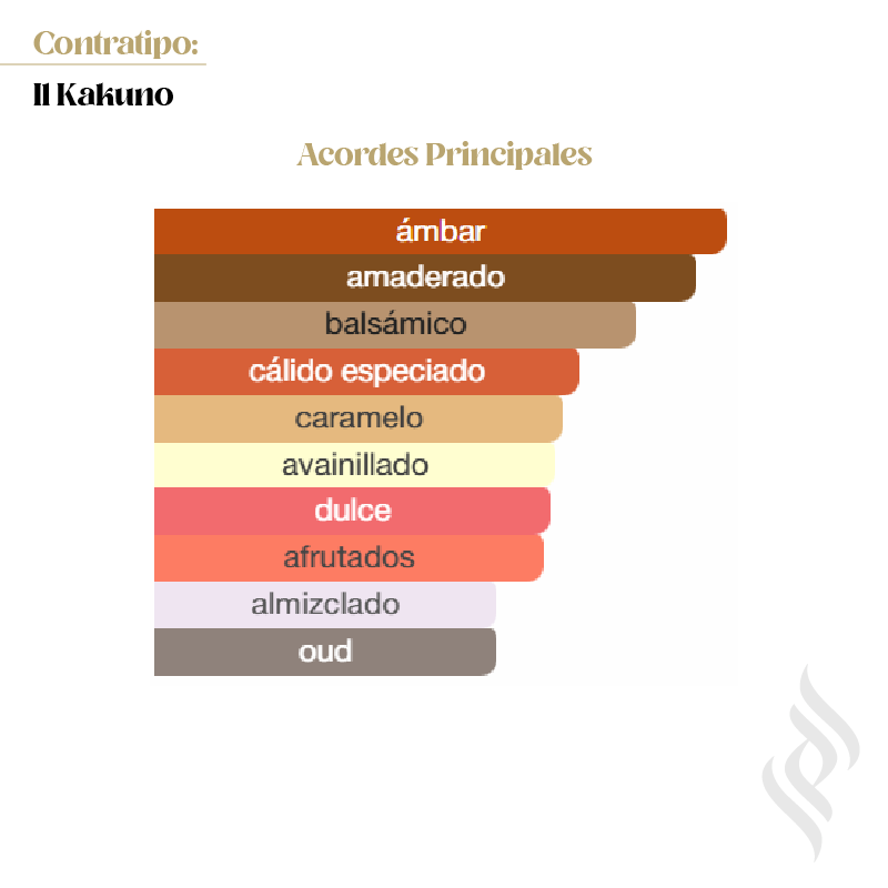Contratipo (Il Kakuno) es una fragancia de la familia olfativa para Hombres y Mujeres. Se lanzó en 2018. Las Notas de Salida son caramelo, bayas silvestres, pimienta rosa, durazno (melocotón), ládano y fresa; las Notas de Corazón son cipriol (nagarmota), jengibre, cuero, rosa, pachulí y azafrán; las Notas de Fondo son bálsamo del Perú, madera de oud, benjuí, vainilla y almizcle.