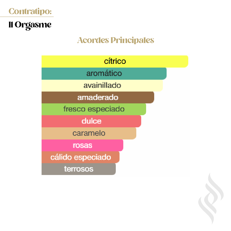 Contratipo (Il Orgasme) es una fragancia de la familia olfativa Oriental Amaderada para Hombres y Mujeres. Se lanzó en 2021. Las Notas de Salida son toronja (pomelo), bergamota, naranja, grosellas negras y agua de mar; las Notas de Corazón son jazmín, rosa, geranio, café, cuero y nuez moscada; las Notas de Fondo son vainilla, caramelo, pachulí, ámbar, roble, vetiver y tabaco.