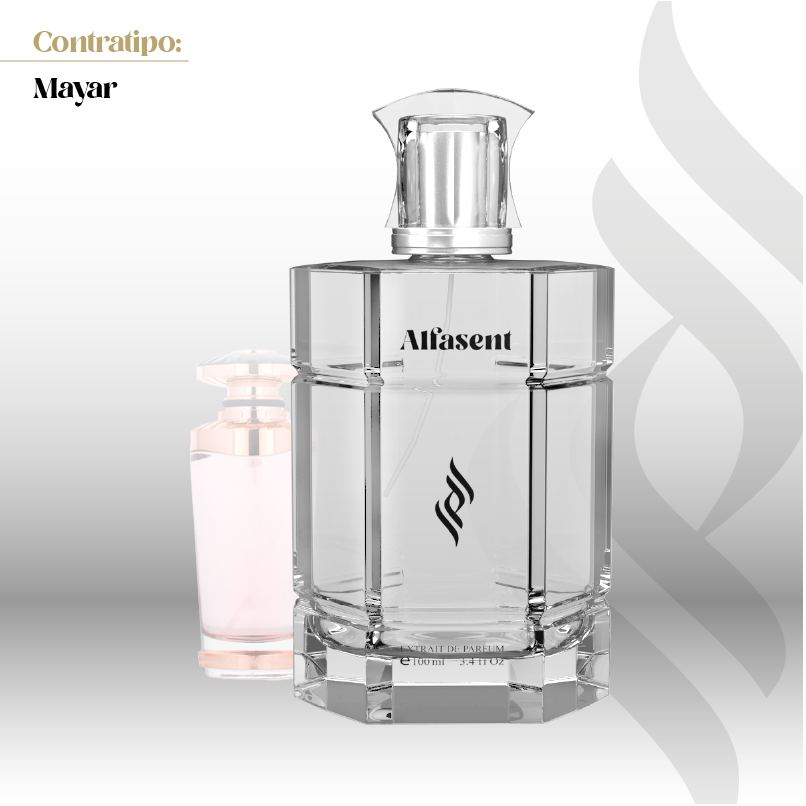 Contratipo (Mayar) es una fragancia de la familia olfativa Floral Frutal para Mujeres. Se lanzó en 2022. Las Notas de Salida son lichi, frambuesa y hojas de violeta; las Notas de Corazón son rosa blanca, peonía y jazmín; las Notas de Fondo son almizcle y vainilla.
