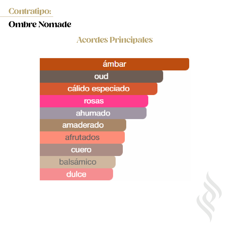 Contratipo (Ombre Nomade) es una fragancia de la familia olfativa Oriental Amaderada para Hombres y Mujeres. Se lanzó en 2018. La Nariz detrás de esta fragancia es Jacques Cavallier Belletrud. Notas de salida: Azafrán y frambuesa. Notas de corazón: Cuero y pachulí. Notas de fondo: Oud, madera de gaiac, ámbar, benjuí y vetiver.