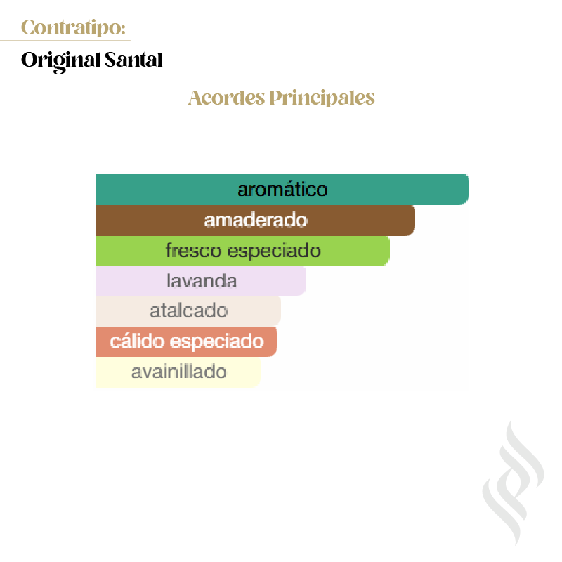 Contratipo (Original Santal) es una fragancia de la familia olfativa Oriental Amaderada para Hombres y Mujeres. Se lanzó en 2005. Fue creada por Olivier Creed, Erwin Creed y Pierre Bourdon. Las Notas de Salida son bayas de enebro, cilantro, jengibre, romero, bergamota y mandarina; las Notas de Corazón son sándalo, lavanda, flor de azahar del naranjo y geranio; las Notas de Fondo son haba tonka, almizcle, cedro y musgo de roble.